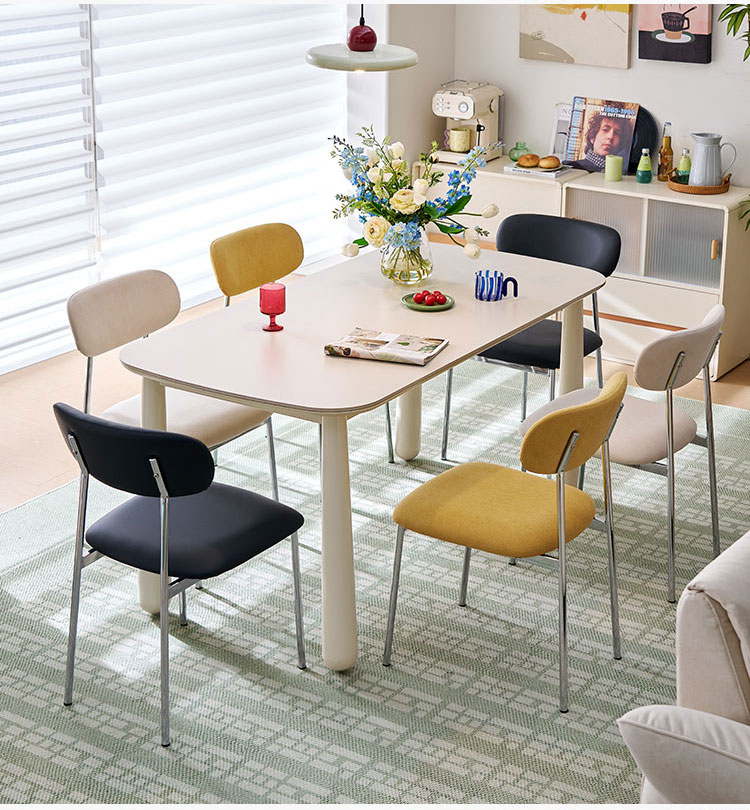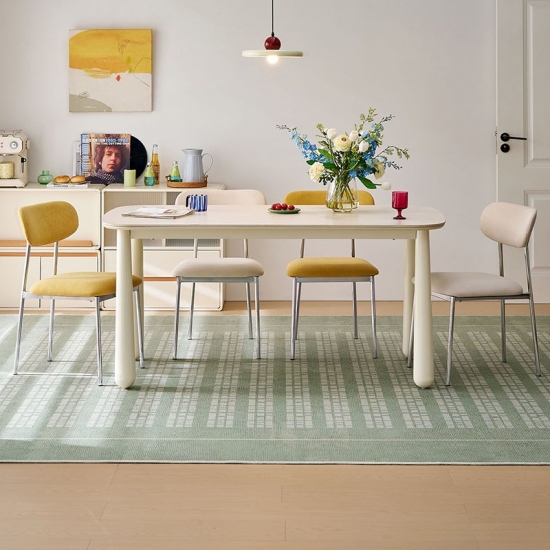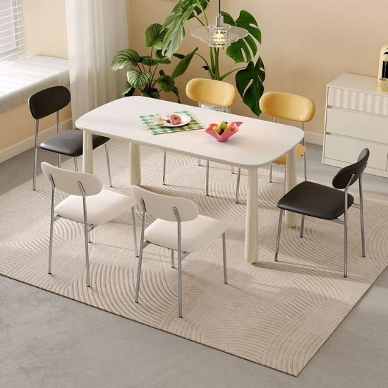 7Mesa de jantar moderna em branco creme com tampo durável em pedra sinterizada TN5R-A
