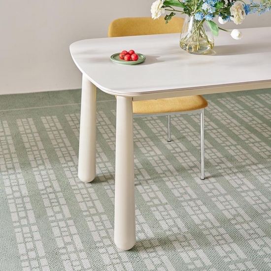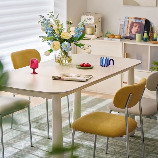 Mesa de jantar moderna em branco creme com tampo durável em pedra sinterizada TN5R-A |