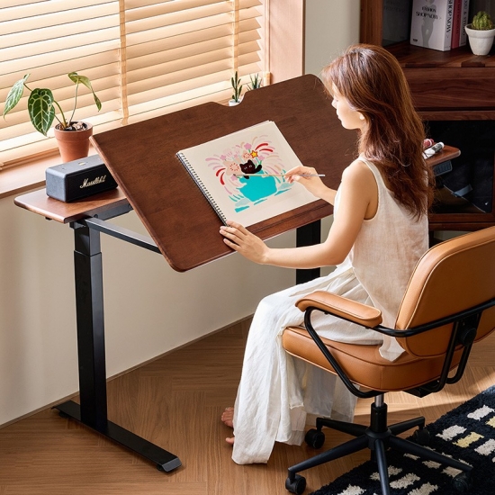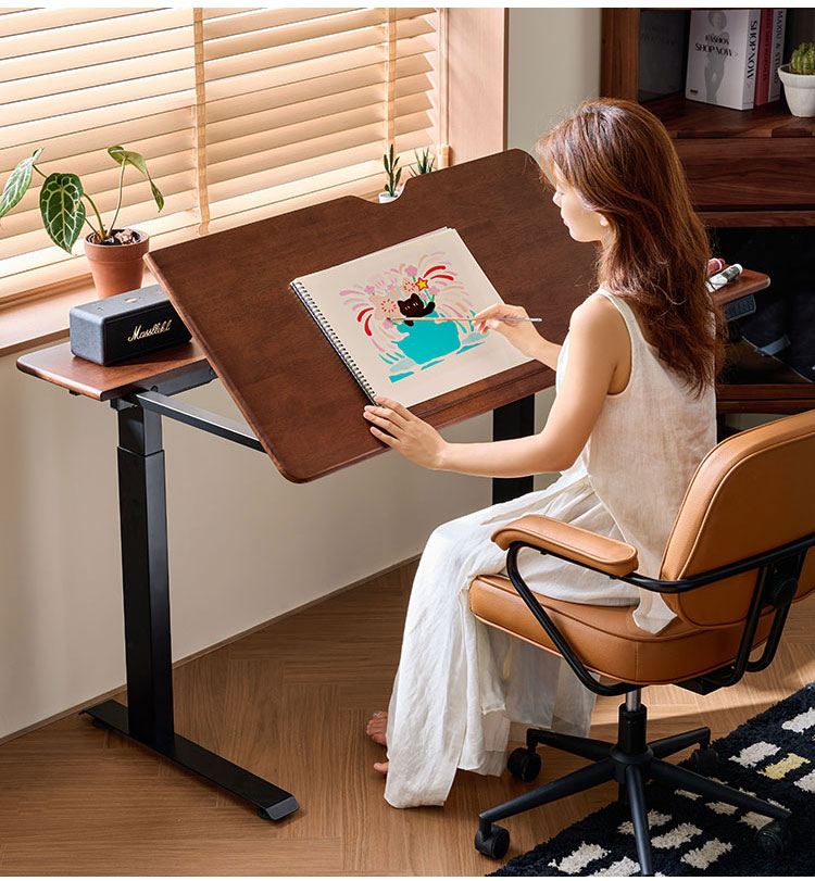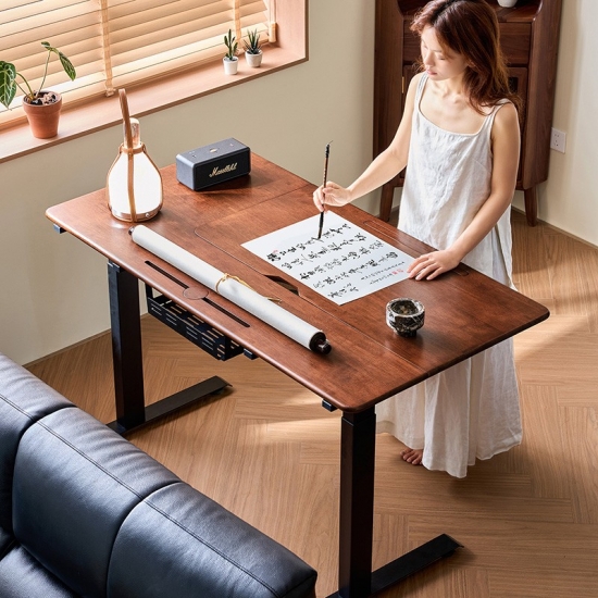 7Mesa de escritório moderna elétrica com altura ajustável em nogueira, modelo BG099-D
