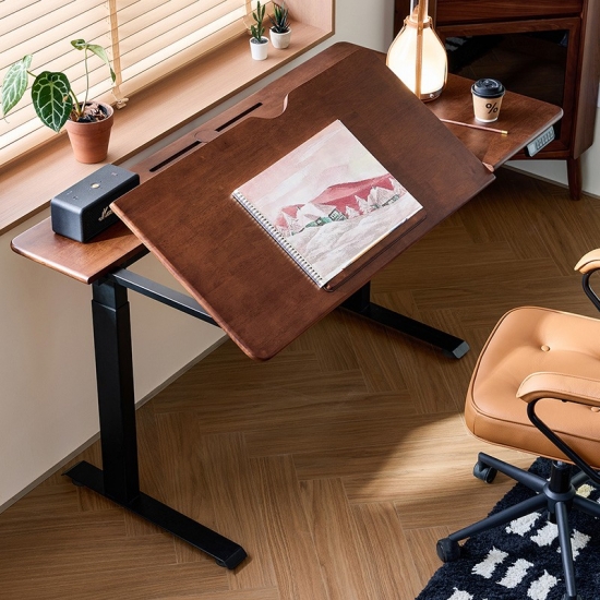 Mesa de escritório moderna elétrica com altura ajustável em nogueira, modelo BG099-D |