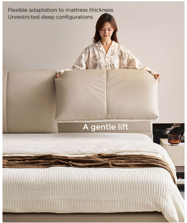 Dê um toque de elegância ao seu quarto com a LINSX. Cama de couro bege macio Onde o luxo encontra o design contemporâneo. Feita em couro bege macio de alta qualidade, esta cabeceira oferece um toque suave e aveludado que traz instantaneamente aconchego e sofisticação a qualquer quarto moderno.