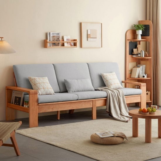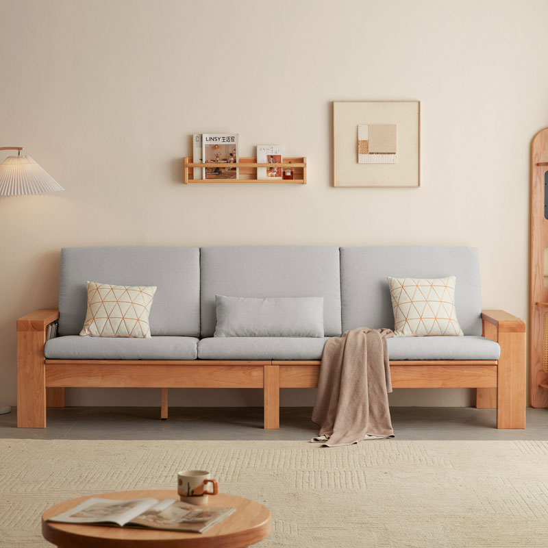 Este novo sofá com uma moldura de madeira é uma peça de mobiliário clássica e durável que combina a beleza natural da madeira com o conforto dos assentos estofados O quadro é normalmente feito de madeira de alta qualidade Esses bosques são escolhidos por sua força, durabilidade e resistência a deformações.