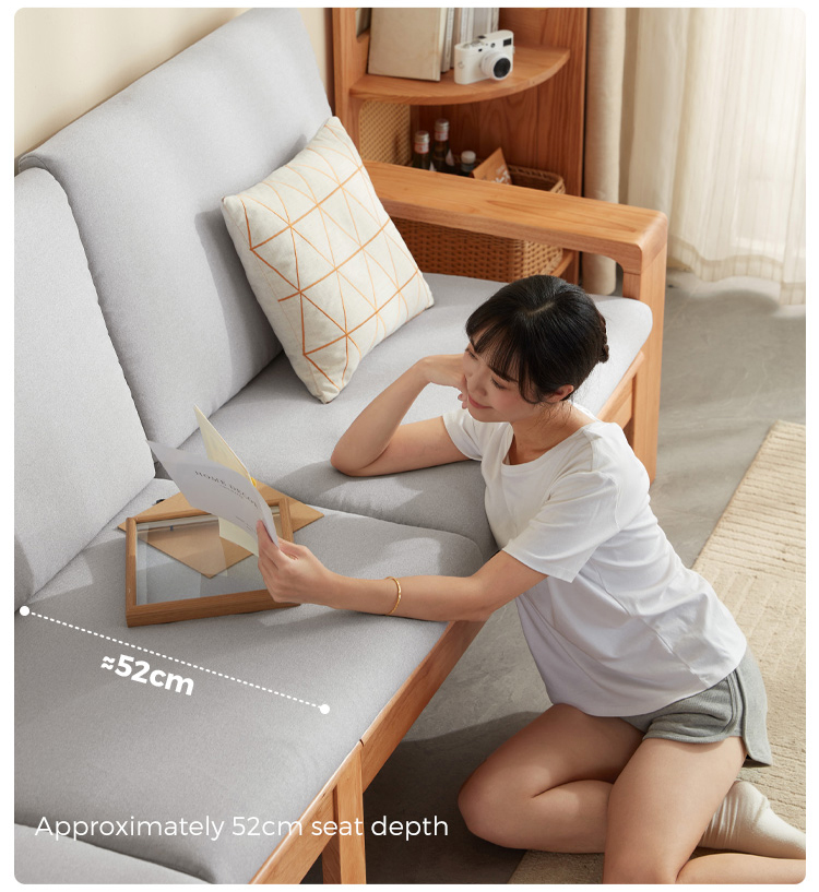 Material para sofá | Quadro: madeira sólida + madeira compensada Espuma: poliéster veludo + espuma de boneca + espuma de alta qualidade Perna: madeira de eucalipto |