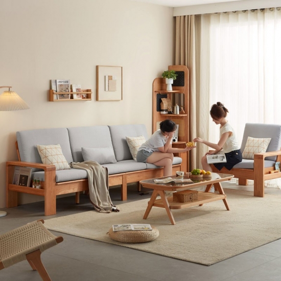 7Tecido moderno de cor cinza 1+3 sofá com moldura de madeira pk3k-a