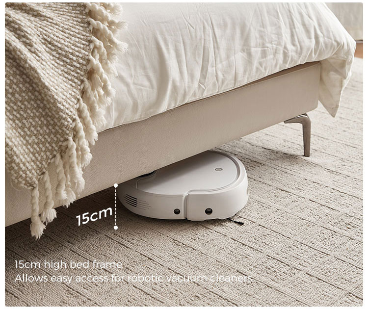 7Cama estofada moderna com estrutura em couro e madeira maciça PC591-A