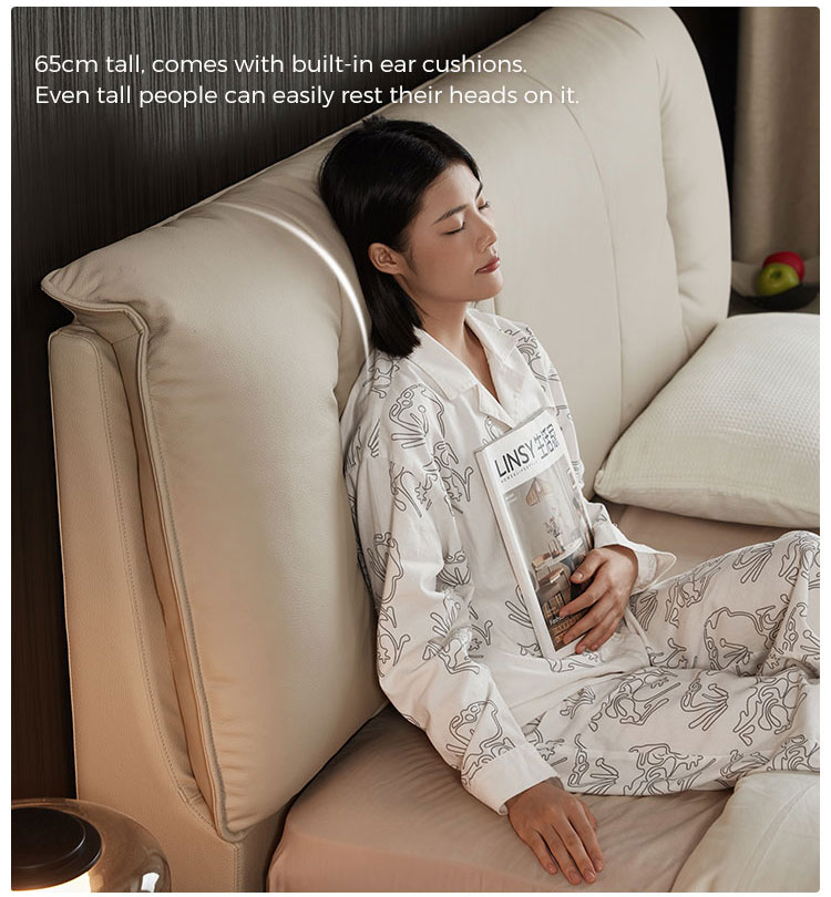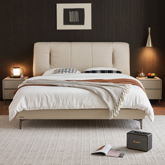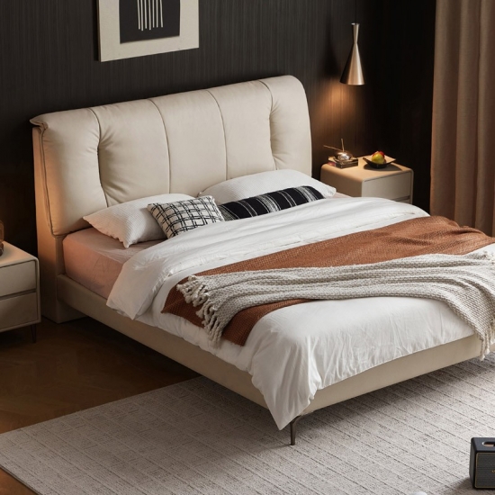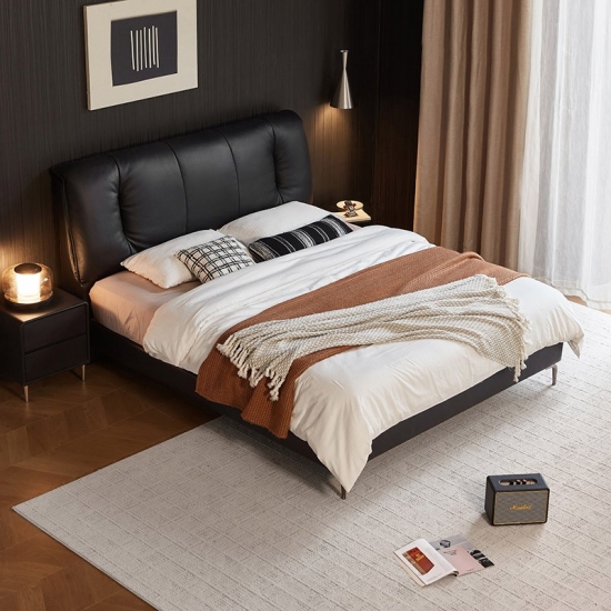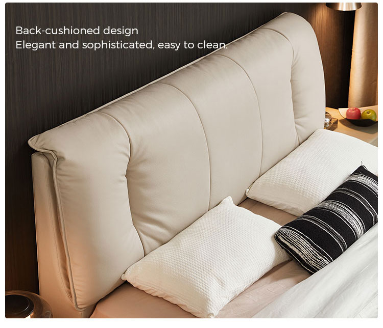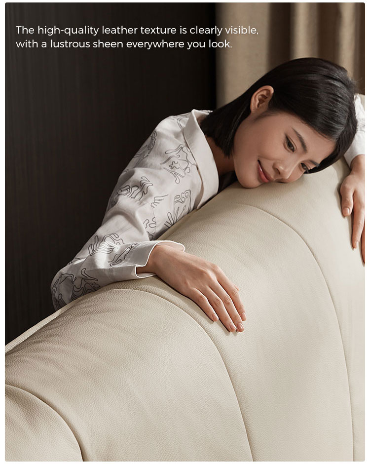 Criada para quem aprecia qualidade duradoura e design contemporâneo, esta cama combina harmoniosamente o calor natural da madeira maciça com o toque luxuoso do couro de flor integral. Linhas limpas, costuras impecáveis e um perfil minimalista definem esta peça. Ela serve como um ponto focal sofisticado, complementando sem esforço diversos estilos de decoração de quarto, sejam eles modernos, minimalistas ou de transição.