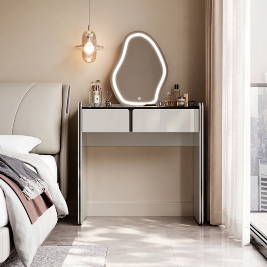 7Mesa de cômoda moderna em cor cinza claro com espelho NV3C-C