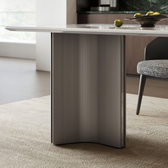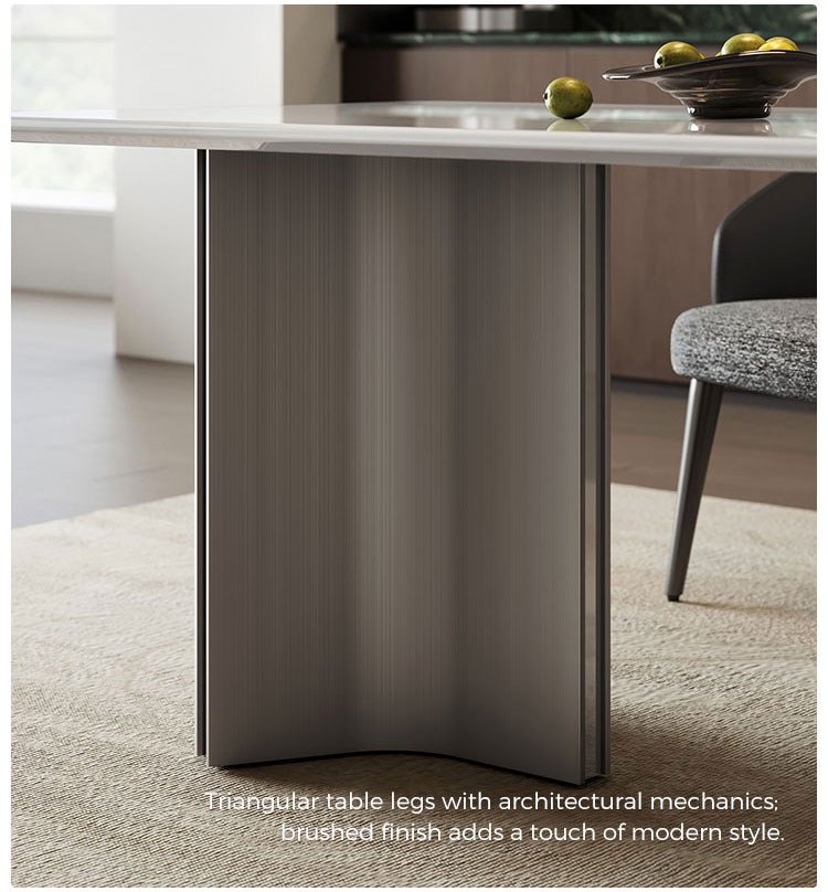Eleve a sua experiência gastronômica com a deslumbrante mesa retangular da LINSY, que combina a beleza da pedra natural com a robustez do design industrial. O luxuoso tampo de pedra é complementado por uma base de aço inoxidável de alta qualidade, resultando em um visual tão resistente quanto elegante. Projetada para a vida moderna, sua superfície resistente ao calor e fácil de limpar a torna a peça central perfeita para lares movimentados. Disponível nos tamanhos de 1,6 m e 1,8 m para se adequar à sua casa.