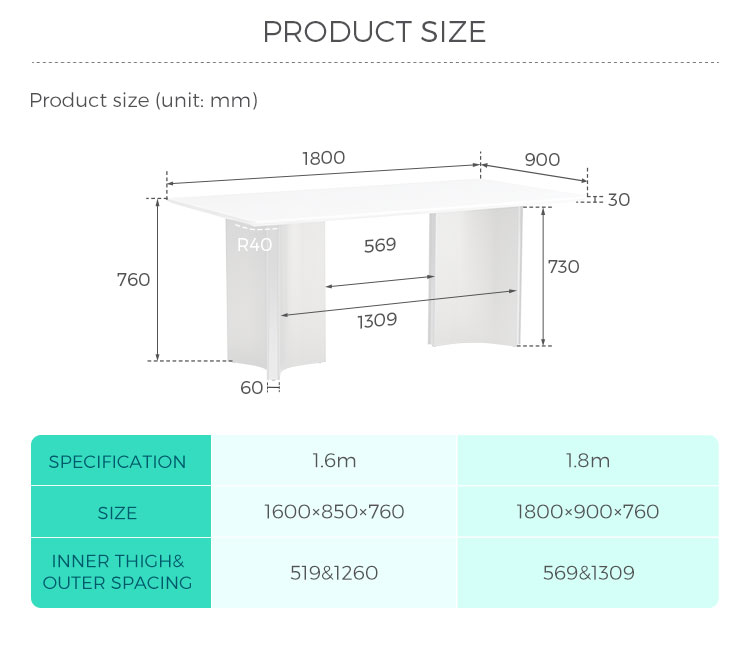 Opções de tamanho versáteis: Disponível em dois comprimentos (1,6 m e 1,8 m) para se adequar perfeitamente ao seu espaço e às suas necessidades de assentos (6 a 8 pessoas).
