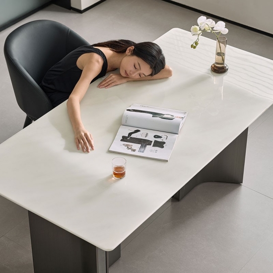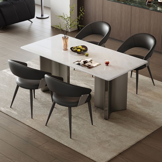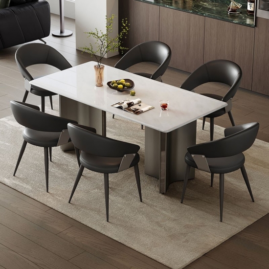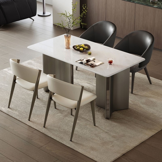 7Mesa de jantar retangular moderna com tampo de pedra premium YN1R-C