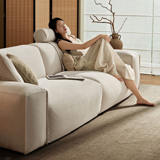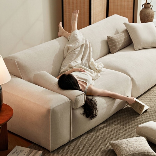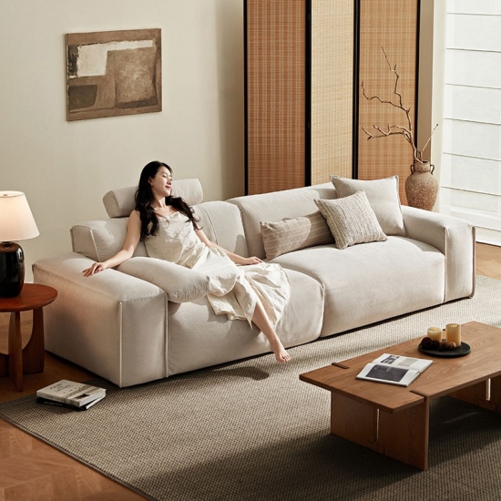 Sofá moderno e espaçoso de tecido branco puro para sala de estar BS673-A |