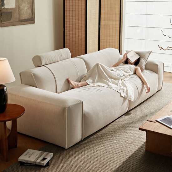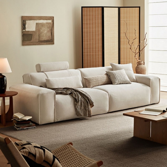 Dê as boas-vindas ao estilo descontraído e ao relaxamento generoso em sua casa com nosso sofá de tecido de grande capacidade, lindamente trabalhado, em branco puro. Projetado para a vida moderna, este sofá combina uma estética clean e arejada com conforto excepcional e amplo espaço, perfeito para reuniões familiares, noites de cinema ou simplesmente para relaxar.