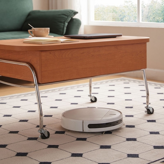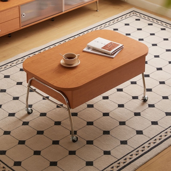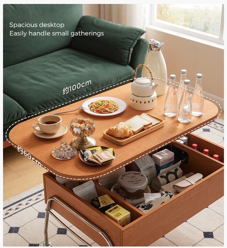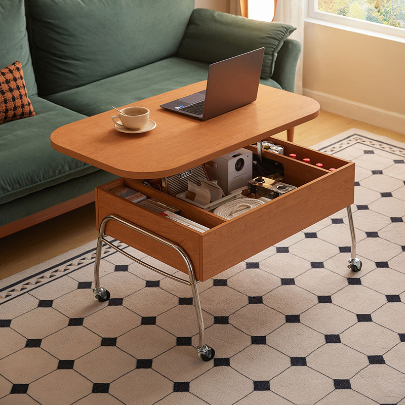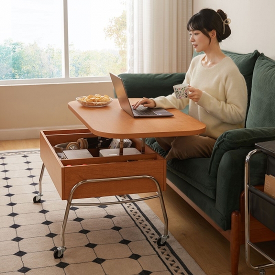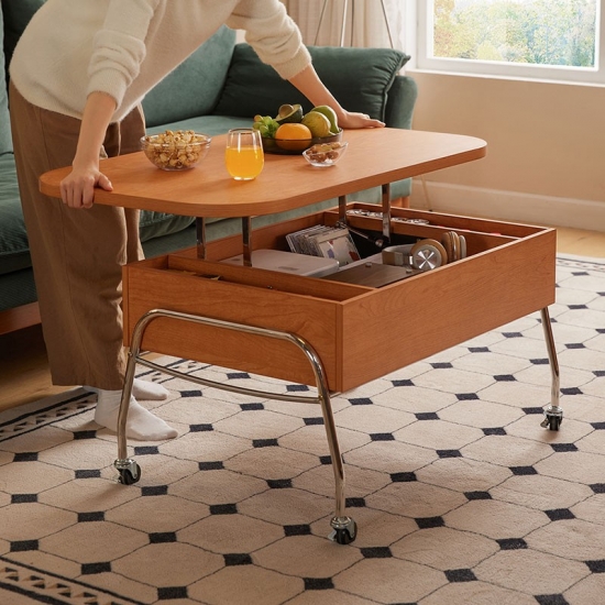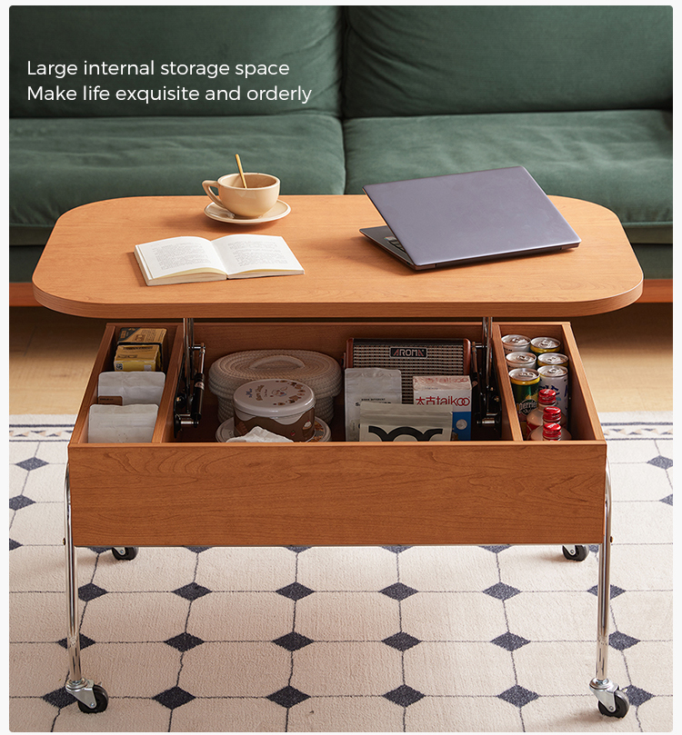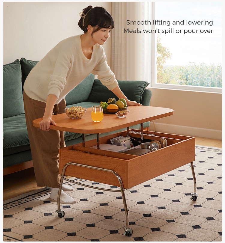 A nova mesa de café com topo de madeira é uma fusão perfeita de design moderno e estética natural, oferecendo estilo e praticidade Criados a partir de madeira de alta qualidade, como carvalho ou noz, esta tabela apresenta um mecanismo exclusivo de elevação que permite que a mesa seja elevada a uma altura confortável, transformando-a em uma área de trabalho funcional ou na superfície de jantar.