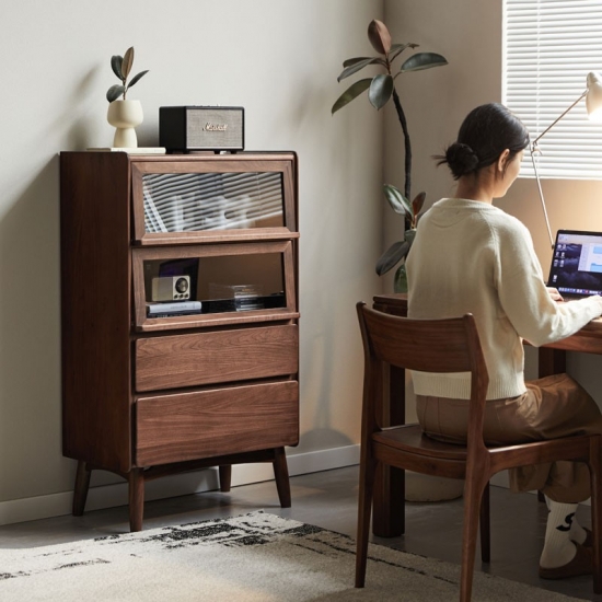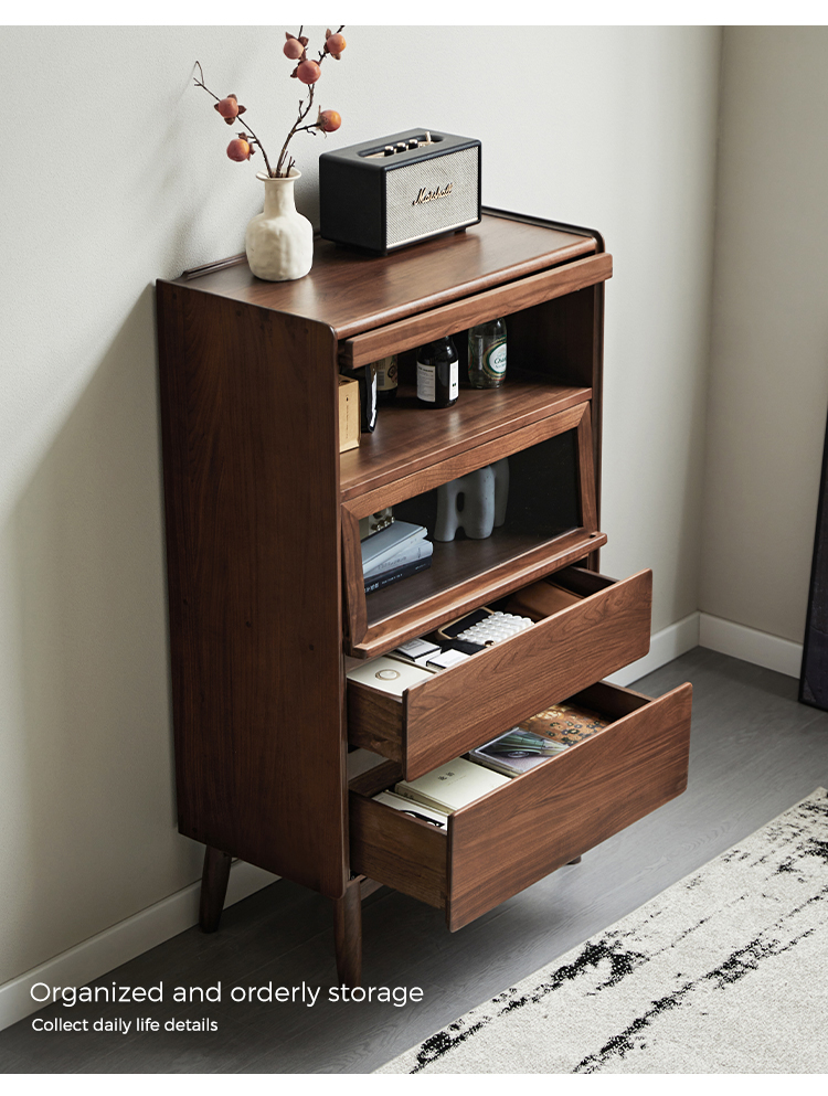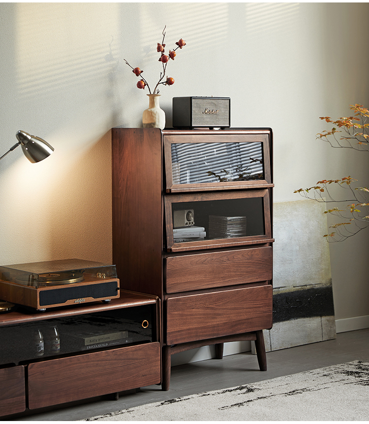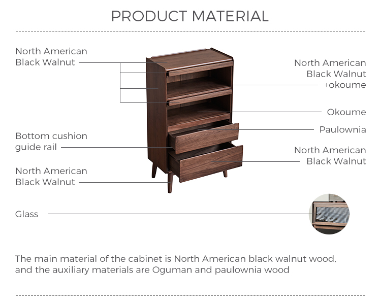 Nome do produto | NEO Chinês Walnut Color Cabinet Baú da sala de estar com gavetas LS187E2-B |