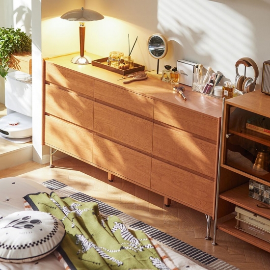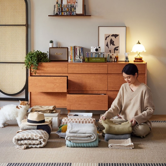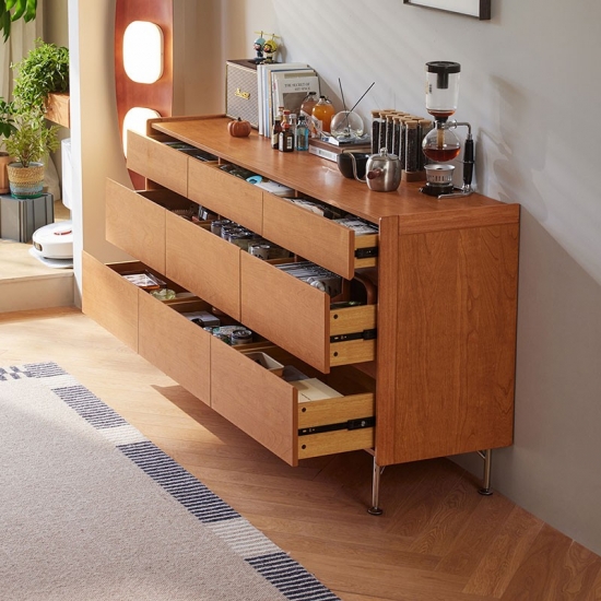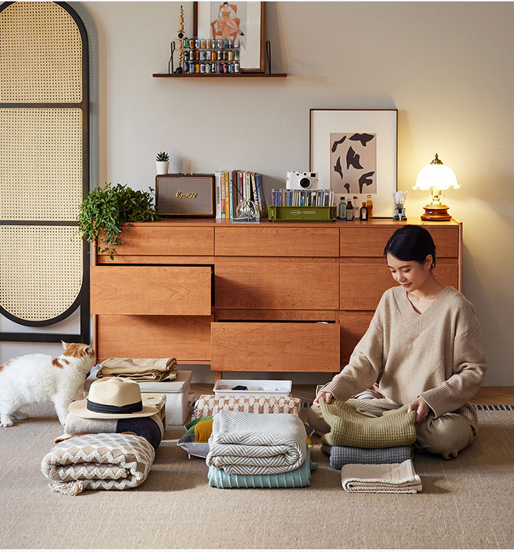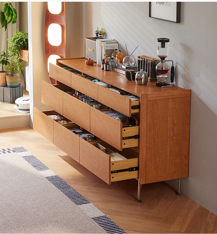 7Armário de armazenamento de madeira estilo nórdico com gavetas KQ3E-A