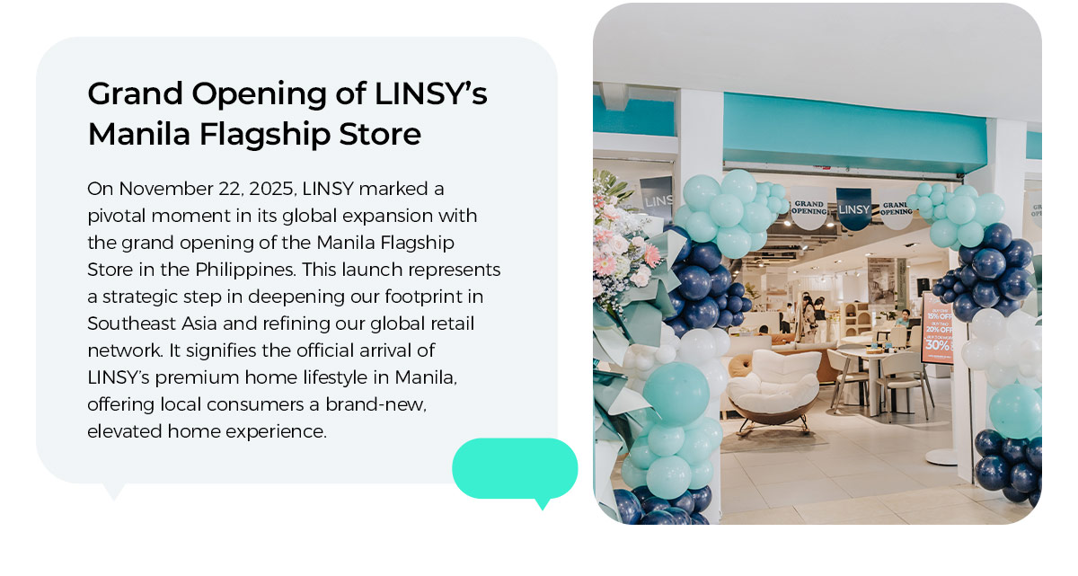 On November 22, 2025, LINSY marked a pivotal moment in its global expansion with the grand opening of the Manila Flagship Store in the Philippines. This launch represents a strategic step in deepening our footprint in Southeast Asia and refining our global retail network. It signifies the official arrival of LINSY’s premium home lifestyle in Manila, offering local consumers a brand-new, elevated home experience.