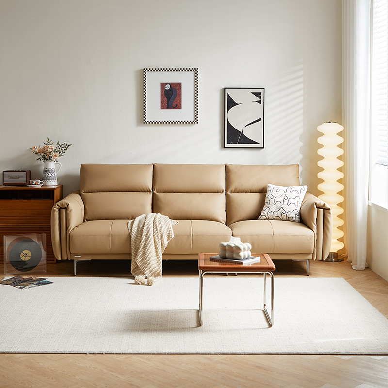 7Sofá de 3 lugares em couro bege LINSY para sala de estar PS206-A