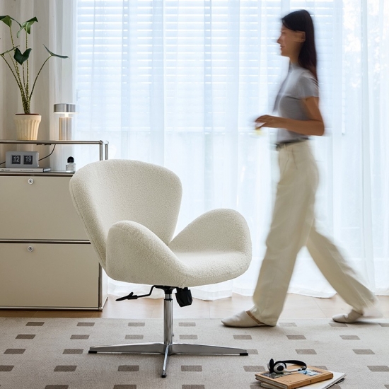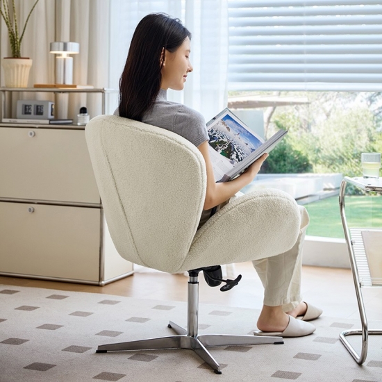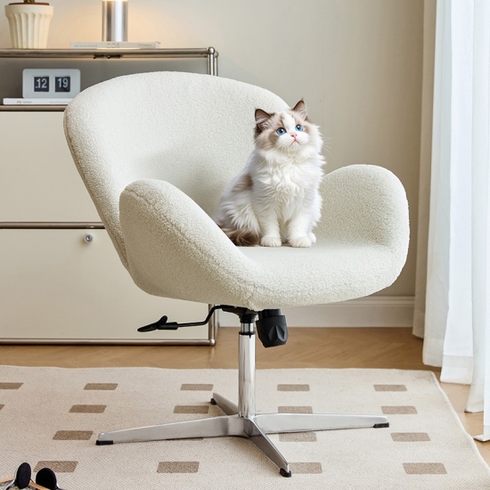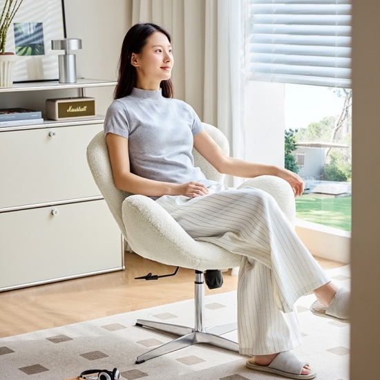 7Cadeira de computador moderna, ergonômica e confortável, em tecido branco, modelo LS462W3-A