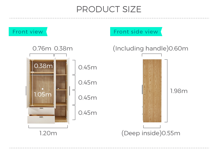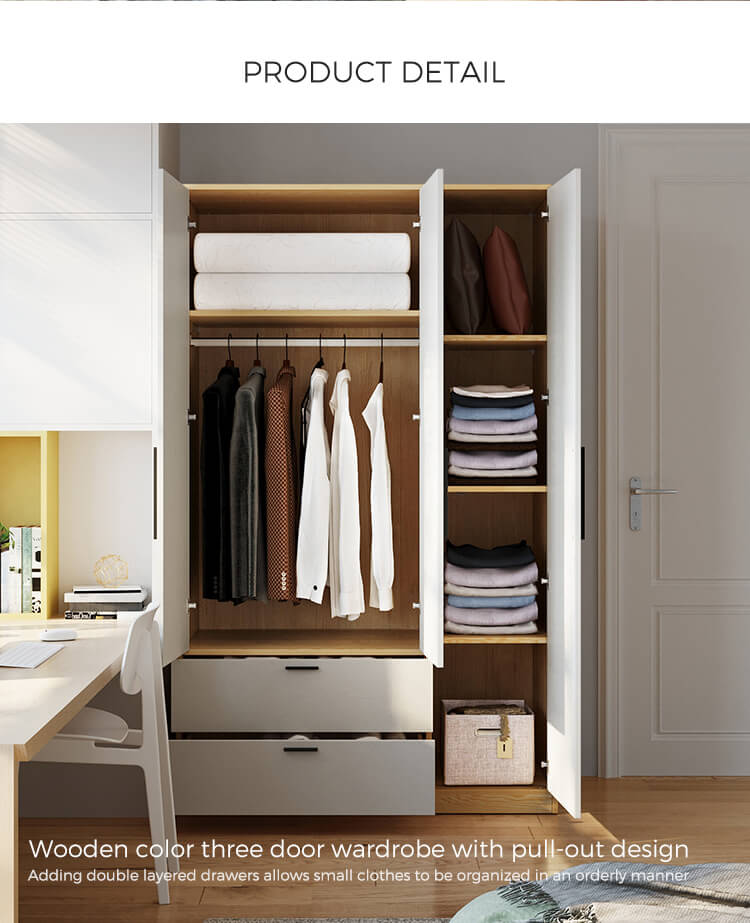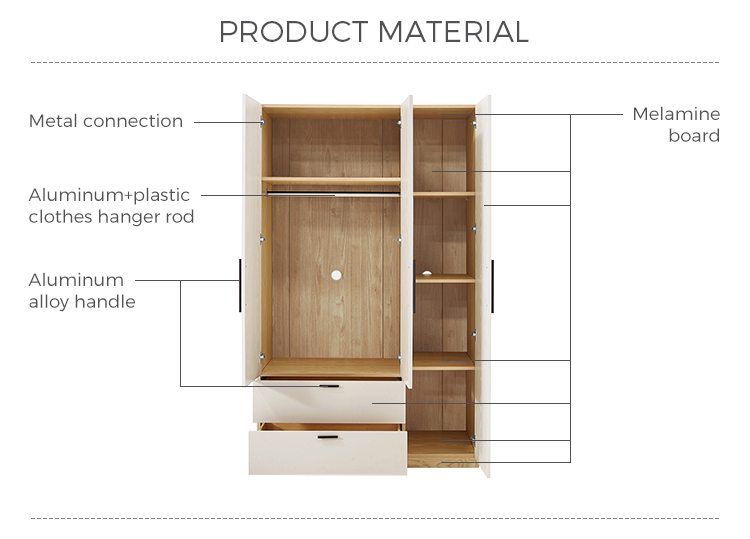 Guarda-roupa de três portas de design simples de cor branca JC16D-A |
